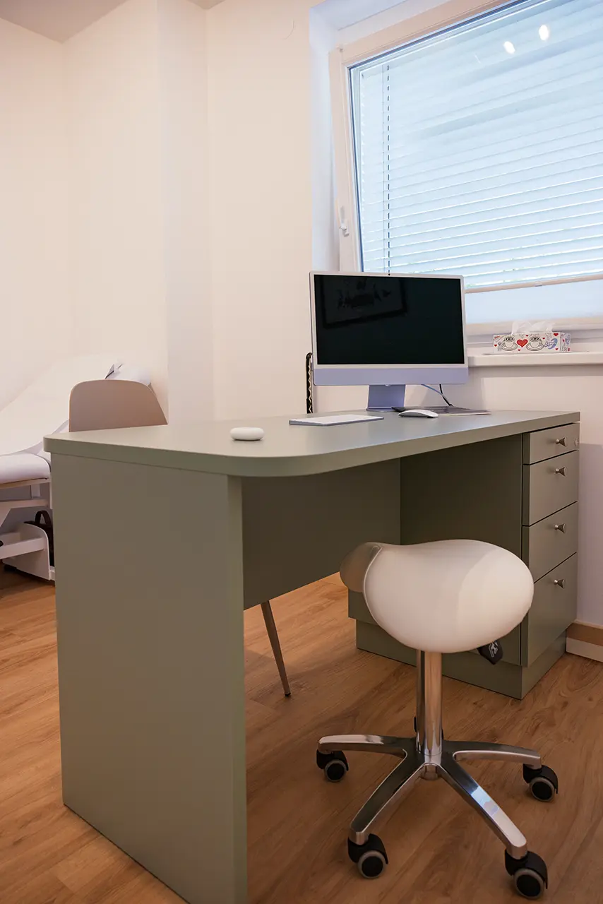 Die modern ausgestatteten Ordinationsräumlichkeiten bieten eine ruhige und freundliche Atmosphäre für Diagnose, Beratung und Therapien – ein insgesamt freundliches Umfeld, in dem Sie sich gut aufgehoben fühlen sollen. Die Praxis ist barrierefrei zugänglich und sowohl mit dem eigenen Fahrzeug als auch mit öffentlichen Verkehrsmitteln gut erreichbar.